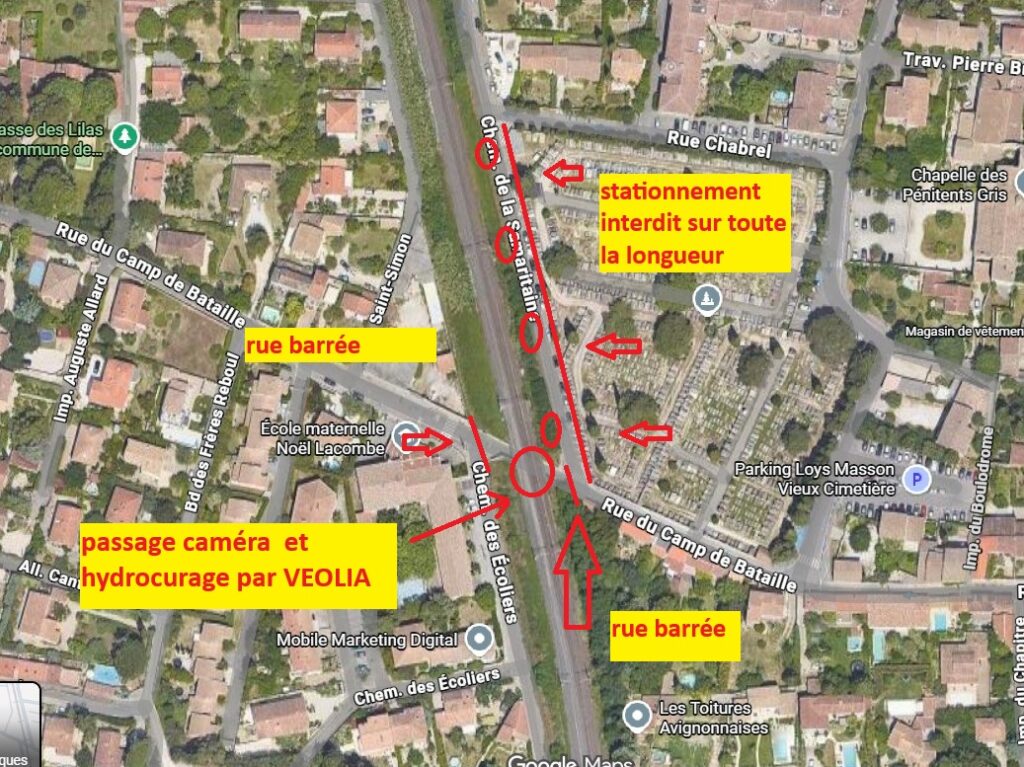 Nous vous informons que des travaux d'inspection télévisée (passage caméra) et d'hydrocurage seront effectués par l'entreprise Veolia le mercredi 11 mars, de 8h00 à 18h00.